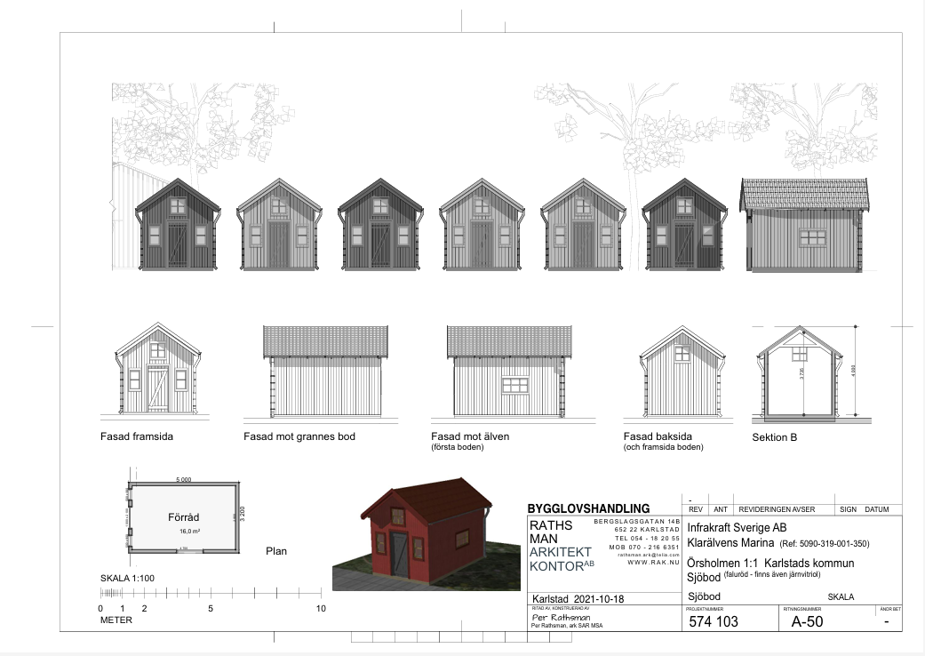 Just nu pågår försäljningen av sjöbodarna med egen båtplats vid Klarälvens Marina på Örsholmen för fullt. På området uppförs även en ny restaurang, gästhamn, kiosk och samlingslokal så vill du vara med från början i den här härliga gemenskapen, då ska du inte fundera för länge. Sjöbodarna är på ca 14 kvm och kommer att finnas i ett flertal olika färger. Inredningen av din sjöbod är bara din egen kreativitet som hindrar dig så börja med att teckna avtal för en sjöbod innan det är försent. Många är bokade redan. Kolla på vår webbsida för mer fakta och fyll i kontaktformuläret, så hörs vi direkt. Första steget till en egen sjöbod, nära stan och kort båtväg ut på Vänern samt Karlstads centrala delar via Klarälvens vackra ådror.
